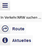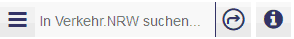 Im Eingabefeld "In Verkehr.NRW suchen", oben links, können Sie Inhalte von Verkehr.NRW finden:
